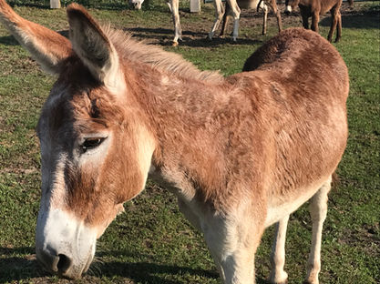 Ingrid is one of our most glamourous donkeys—but not just because of her iconic namesake. Her lovely ginger coat is a very rare color fur for donkeys. She definitely stands out in a crowd!